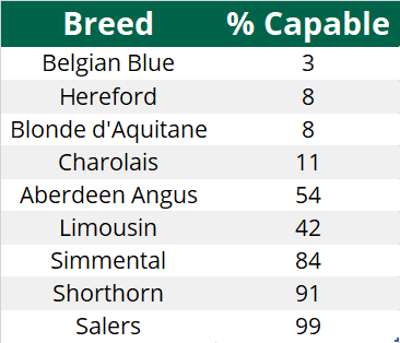 What O’Dea wished to highlight, by analysing data published by the ICBF, is how many bulls within each beef breed can achieve this.