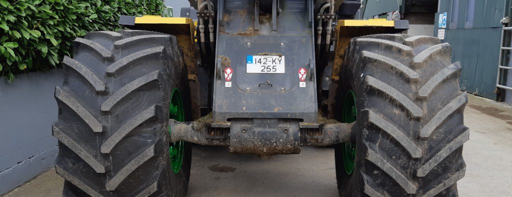 The system is typically intended for fitting to loading shovels during the silage season. The idea is that the front wheels are kept at their standard (track) width on the road.