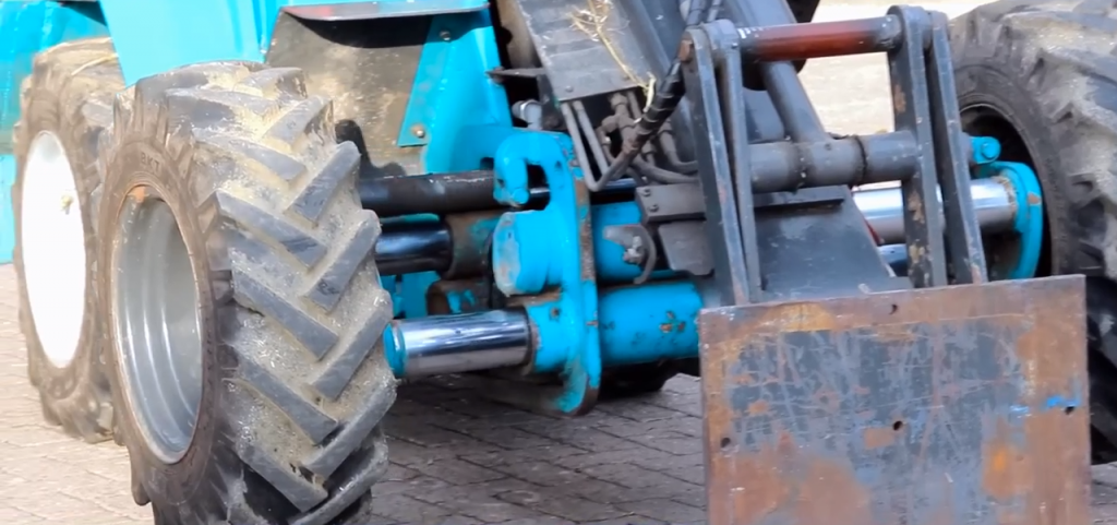 Once safely on the ground, telescopic front stub-axles allow the loader’s front wheels to shunt outwards – onto a wider and more stable wheel track (for safer bale handling).