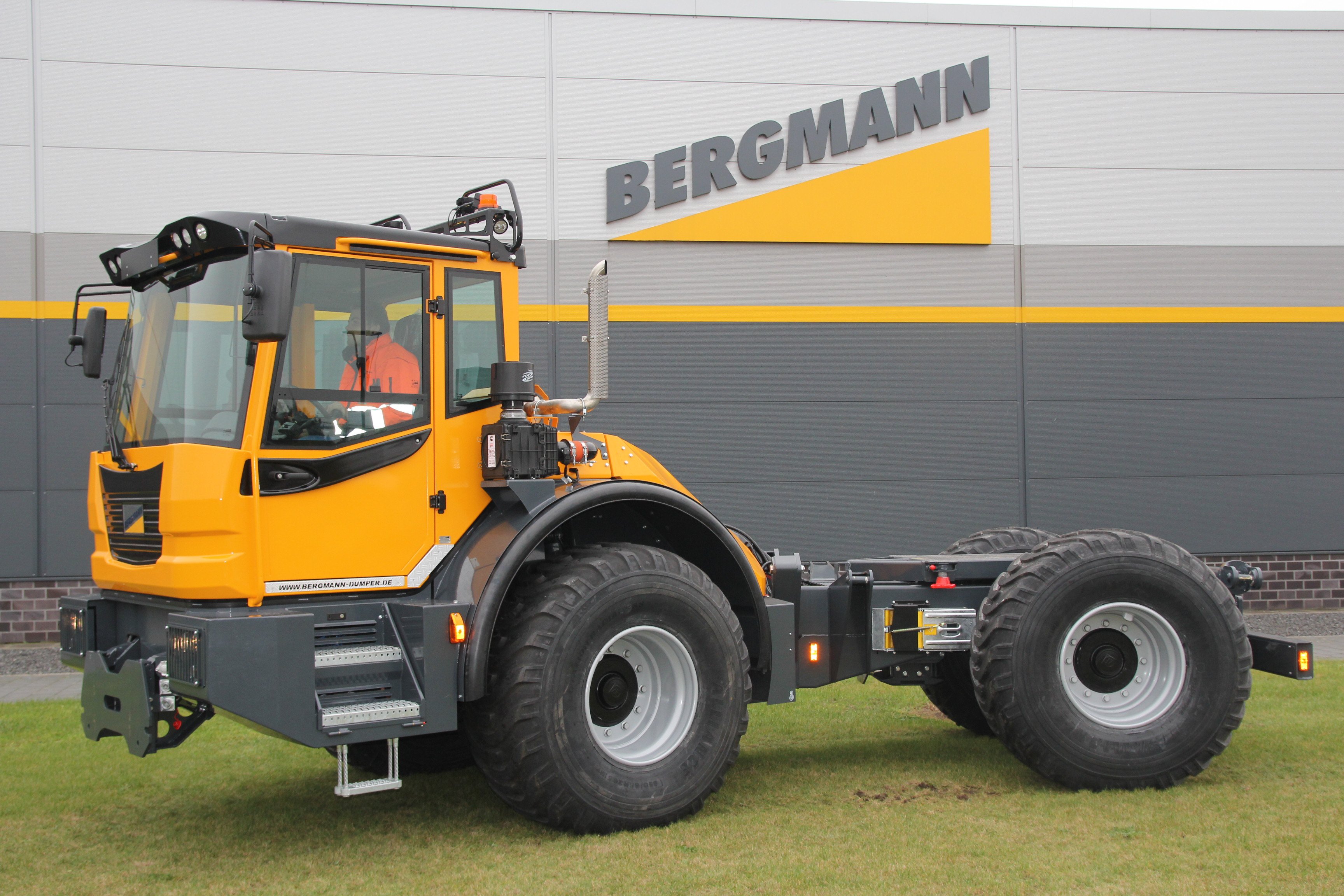The machine, which incorporates an AgriSpread (Irish-built) spreader unit, can handle both lime and fertiliser. The spreader is mounted on a Bergmann 3012 DSK articulated ‘dumper’ chassis.