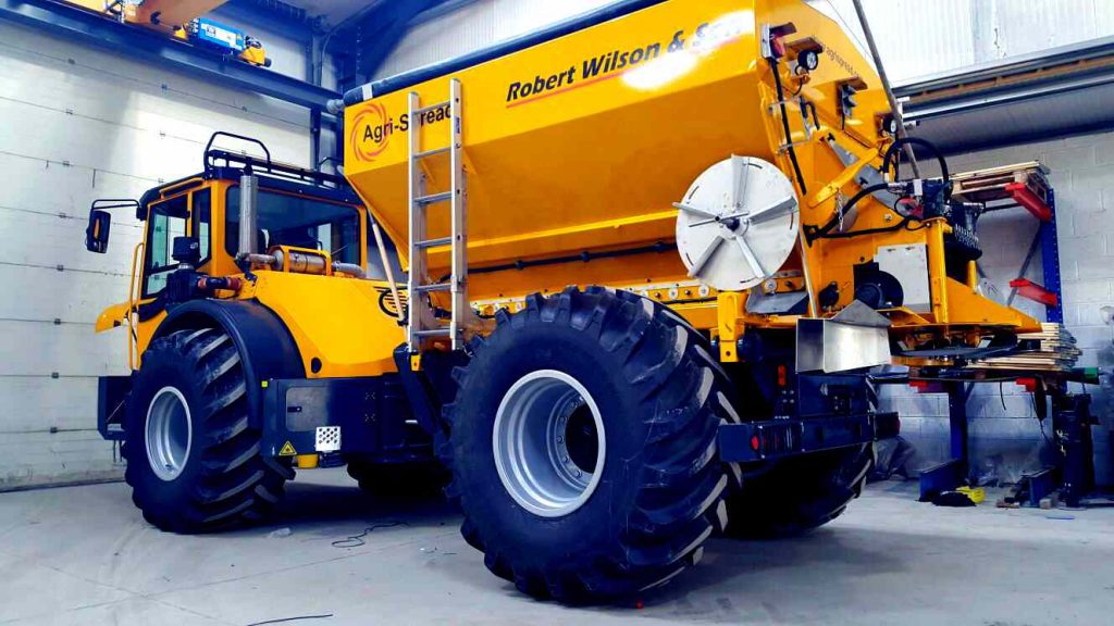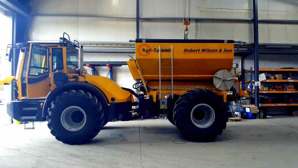 The Bergmann unit was supplied and sold by Kattrak International Limited. The spreader “conversion” was carried out in Ballyhaunis, Co. Mayo, where AgriSpread is based. The resulting machine is now used by Robert Wilson & Son – an agricultural contractor and merchant based in Ayrshire.