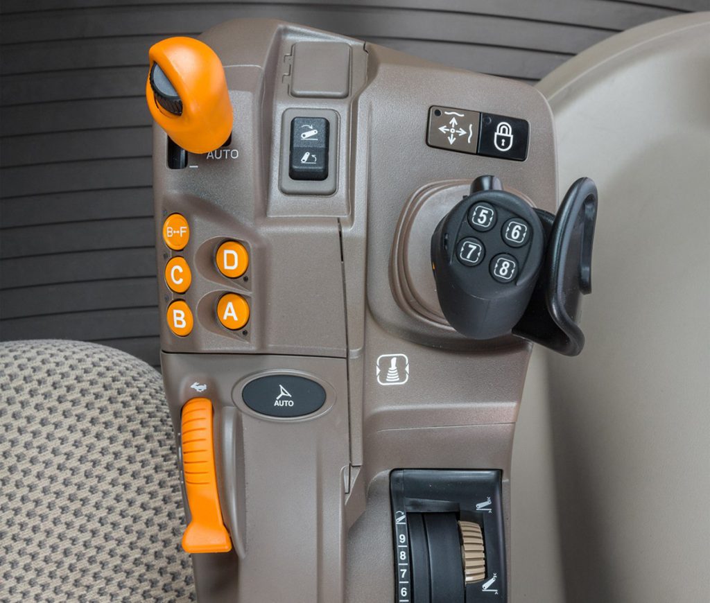Up to four mechanical or electric SCVs are available – the latter is a new option available for the first time on these tractors. Switches on the electro-hydraulic joystick are fully programmable; the direction of travel can be changed on both this and the mechanical joystick via a push-button.