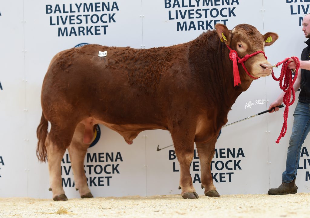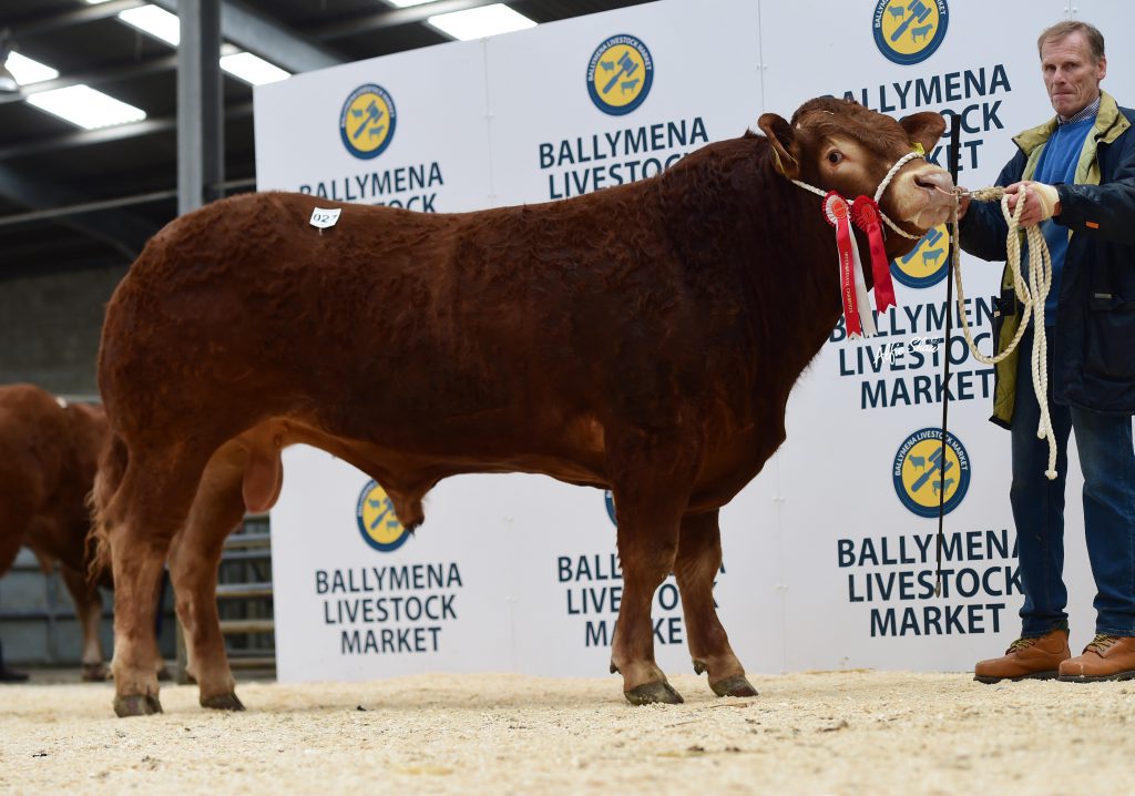 With buyers from across the UK at Ballymena Livestock Mart on Monday, 29 bulls found new homes at a healthy clearance rate of 83% and to an average of £3,038 (€3,742) – up almost £300 (€343) on the year before.