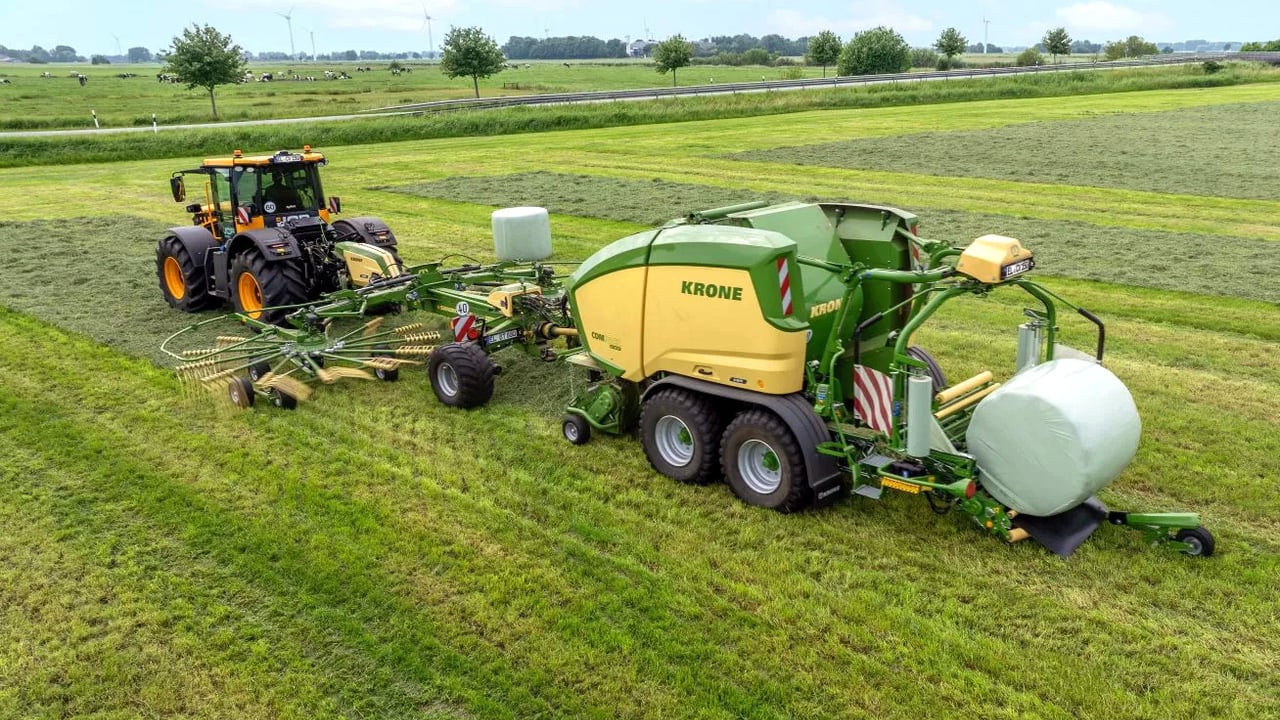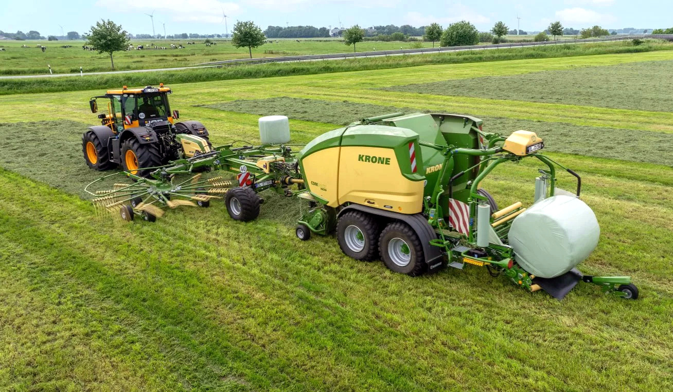 Krone, however, has gone one further and added a rake to the front of the baler, thus reducing the number of field passes yet again.