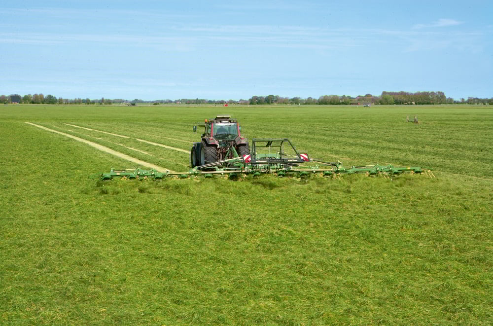 The company also says the rotor gearboxes on the tedder which are mounted underneath the beams to reduce load are maintenance-free as well