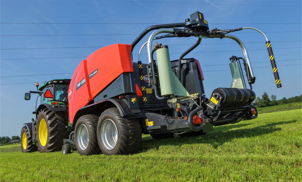 Kuhn has upgraded its fixed-chamber round baler-wrapper combination machine by making film binding (instead of net) available as an option.