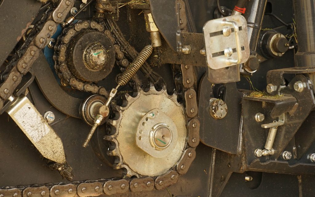 These automatically shift the baler to the left or right, as directed by sensors mounted in the chamber which detect the shape of the bale as it forms.