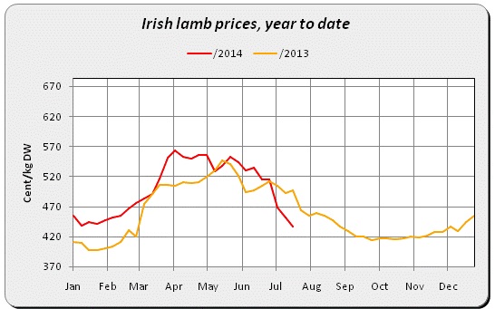 Supplies for the week ending August 15th stood at around 59,000 head, which is slightly higher than supplies for the corresponding week in 2013. Cumulative supplies are around 1% higher than 2013 figures, standing at around 1.55 million head.
