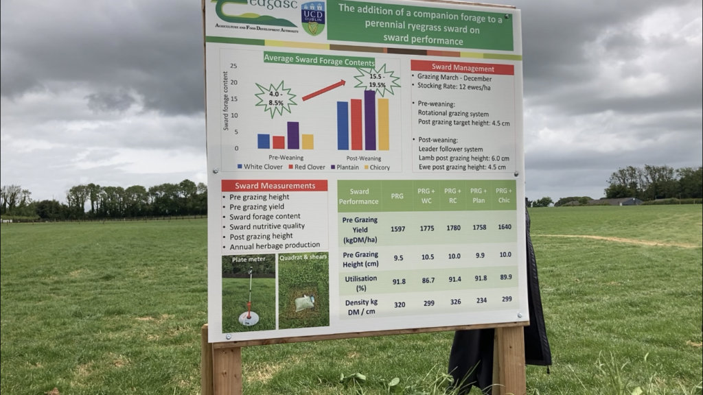 Speaking to Agriland about the study of the addition of a companion forage to a perennial ryegrass sward on ewe and lamb performance, PhD Walsh Scholar Lisa McGrane said: "There's been a four-year animal study conducted on this comparing grass-only; grass and white clover; grass and red clover; grass and chicory; and lastly grass and plantain swards.