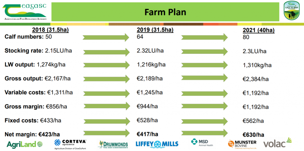 Additionally, with the extra numbers purchased, the stocking rate on the farm is expected to reach 2.3LU/ha. By 2021, output (kg/ha) is targeted to hit 1,310kg/ha, while gross output is expected to rise to €2,384/ha.
