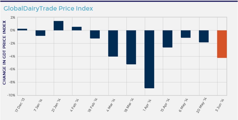 According to DairyCo which is a levy-funded, not-for-profit organisation working for Britain’s dairy farmers there is. It says while at face value the latest Fonterra auction results would indicate a continuation of the downward movement in wholesale prices.