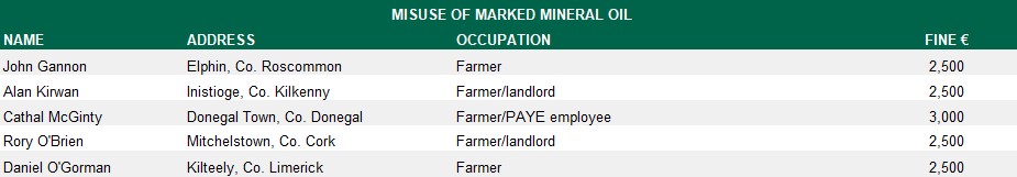 Meanwhile, an additional five farmers were handed fines for the misuse of marked mineral oil (green diesel).