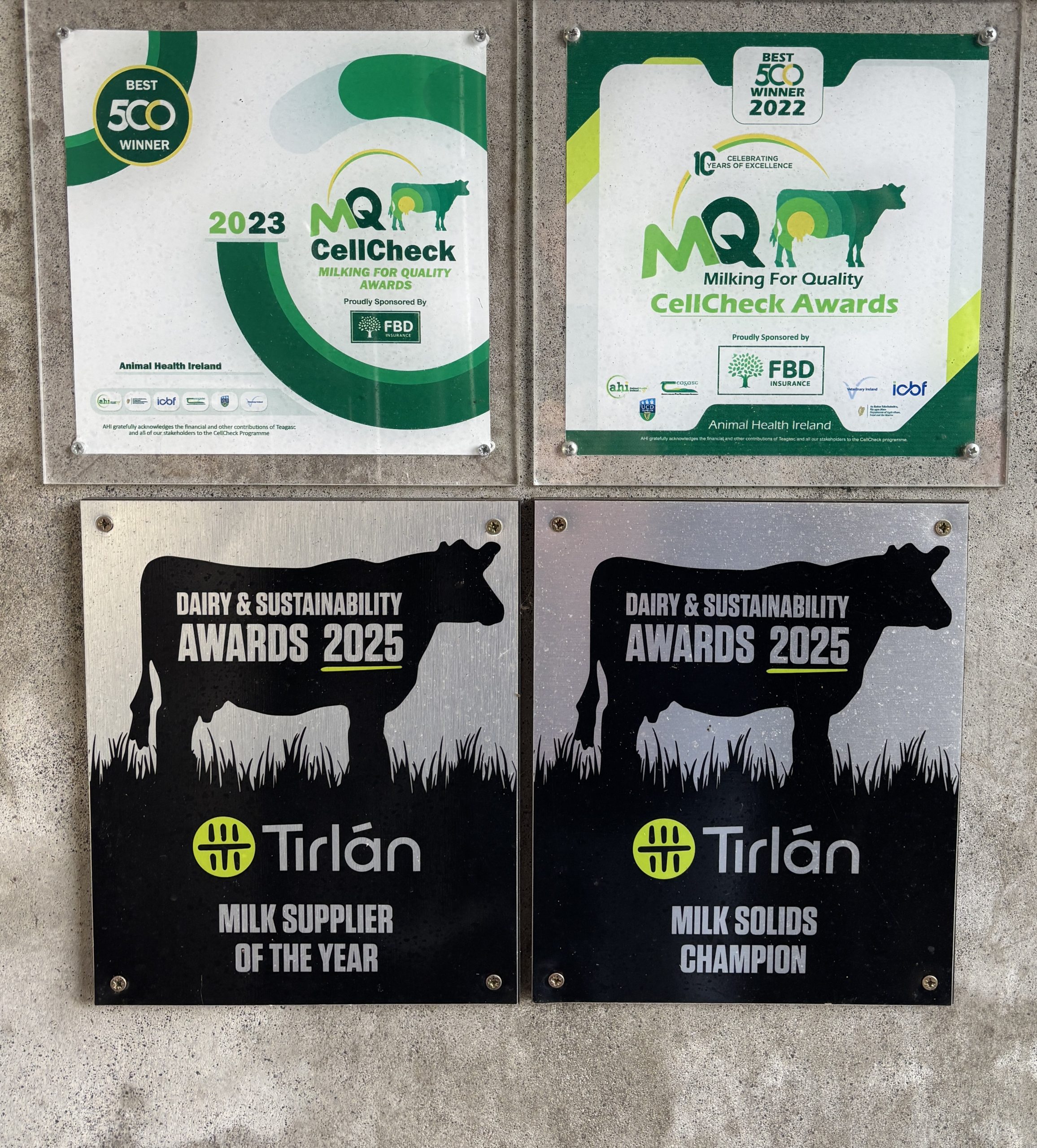 This year alone, he won another award at the Animal Health Ireland CellCheck awards, as well as winning a prize at the NDC and Kerrygold milk quality awards.