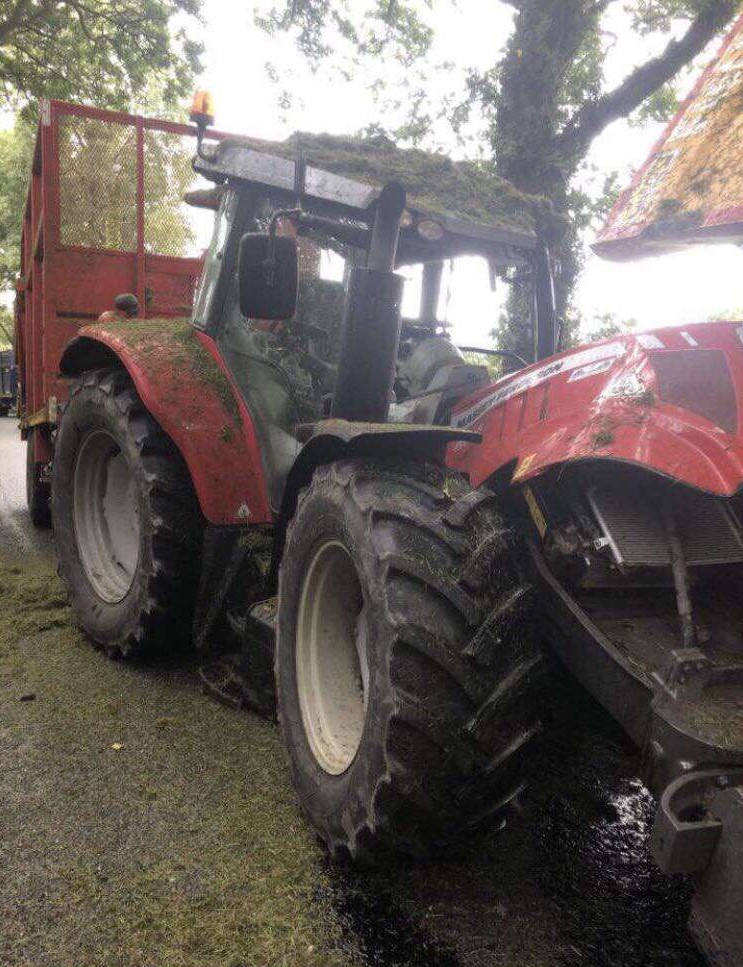 It is understood the two tractors were drawing silage when they collided at Llanychaer near Fishguard, Pembrokeshire.