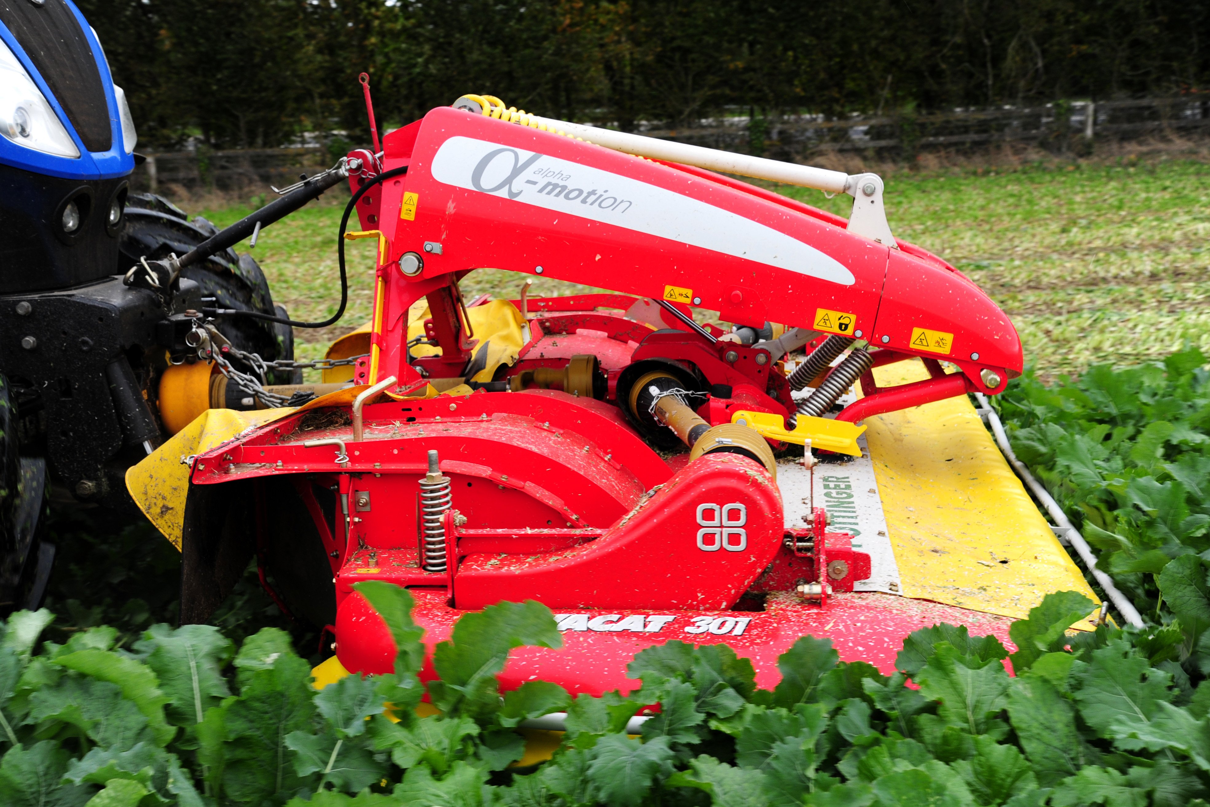 To cut the crop Pottinger recommended a 3m wide Novacat 301 front-mounted mower. To reduce damage to the leafy crop, the conditioner needed to be removed. This, Tomas noted, was a 10-minute job in the workshop.