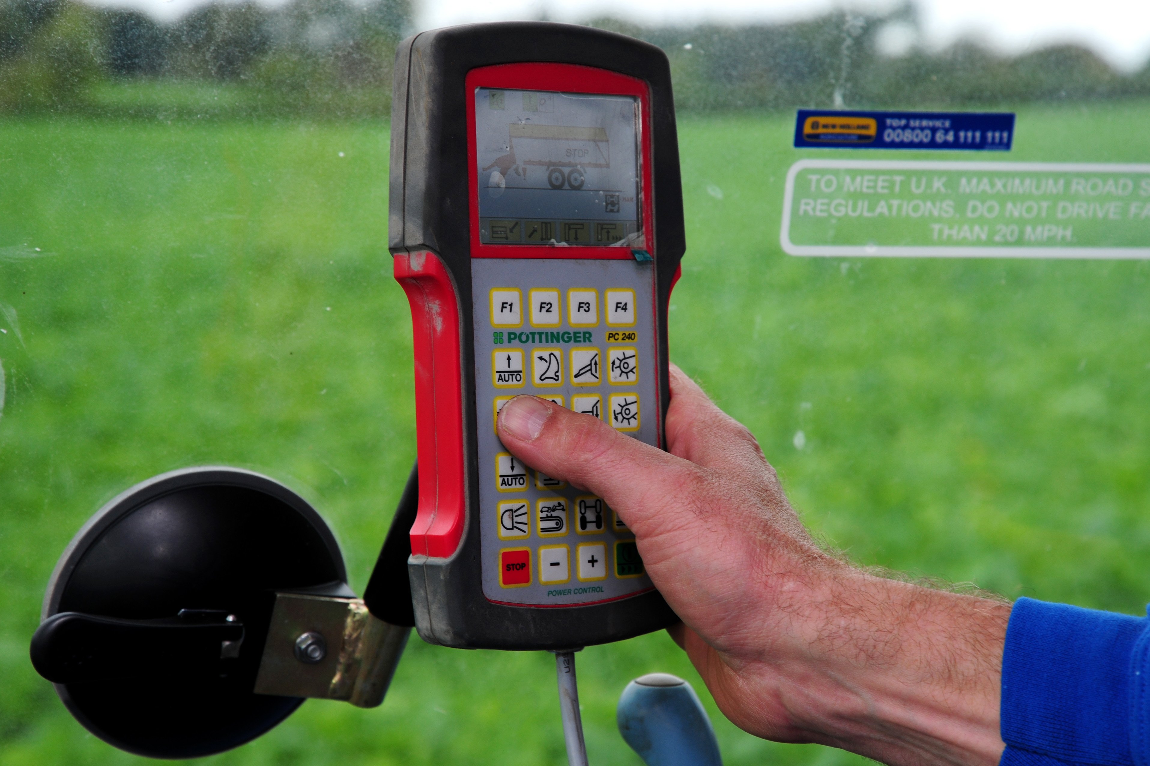 He moves the load back as it reaches halfway up the wagon sides, rather than let it fill to the top. This function is controlled by an ISOBUS-connected touch-pad in the cab.