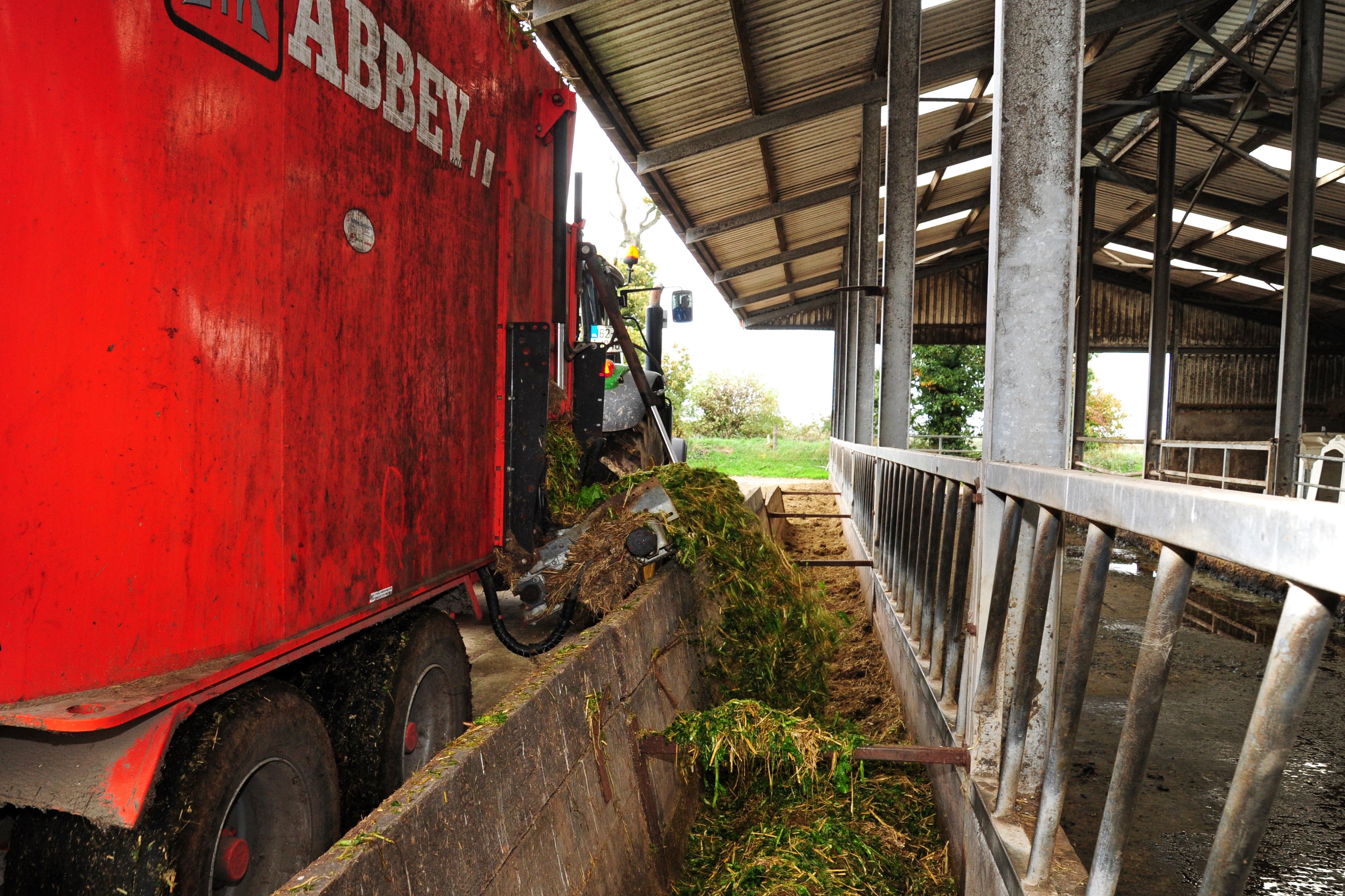 The mixture is then deposited into the feed trough, ready for the cows to be introduced in two batches for feeding.