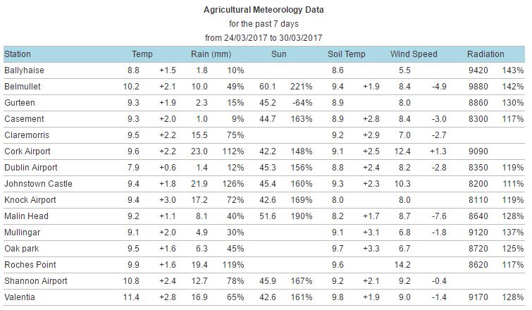 In addition, figures from Met Eireann show that soil temperature and sunshine (radiation) levels are in a positive position.