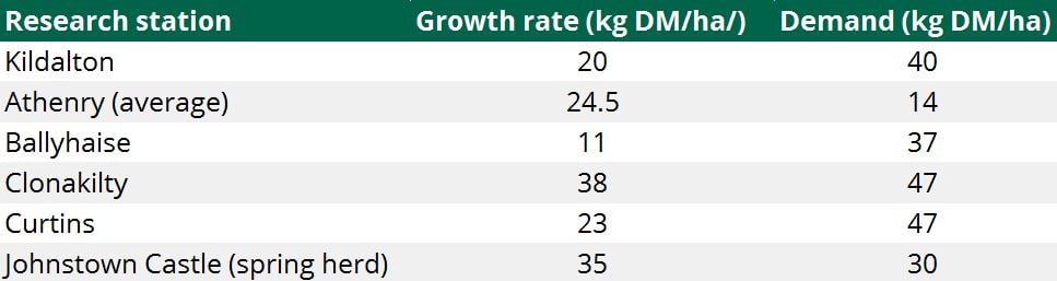 This was closely followed by Leinster-based farms at 22kg DM/ha/day, while Ulster and Connacht farms grew at 15kg DM/ha/day and 19kg DM/ha/day respectively.