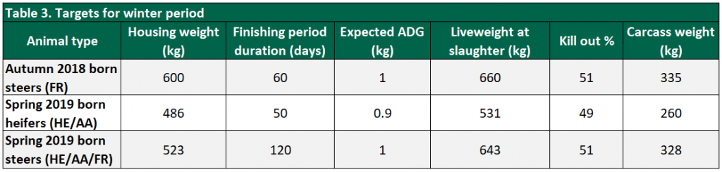 Once the heifers have been slaughtered, the remaining animals on the farm for winter finishing consist of spring 2019-born steers, which will be drafted in February / early March.