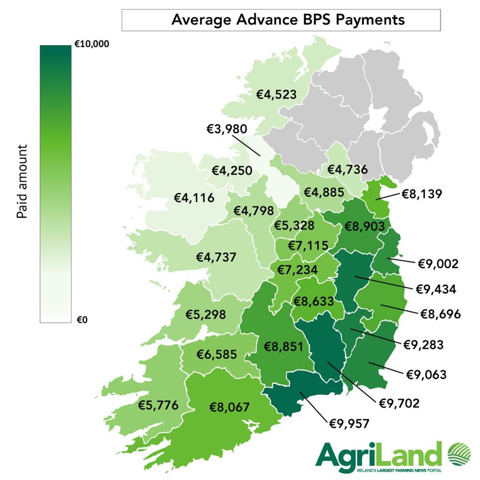 Farmers in the west and north-west region, including counties Mayo, Galway, Roscommon, Sligo and Donegal received an estimated advance BPS payment of between €4,000 and €4,800.