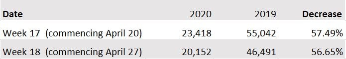 To put the situation into context, new department figures show that the number of animals moving through Irish marts so far this year – up to May 3 – is back 33% on the same period last year – standing at 476,844 for 2020, compared to 710,191 for 2019.