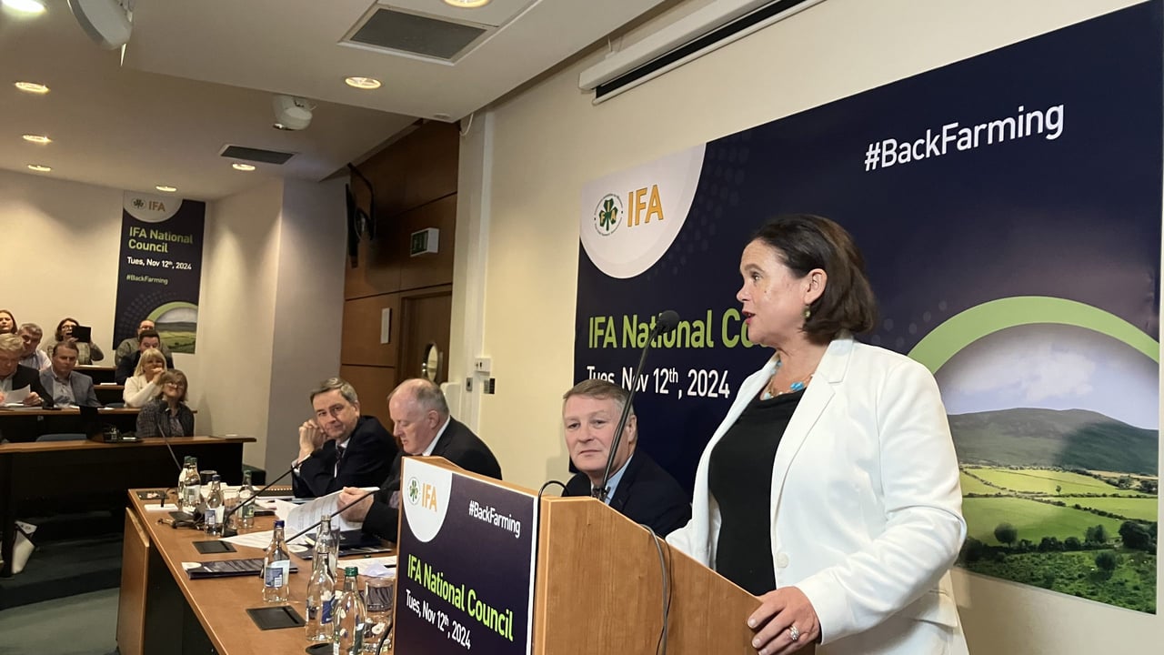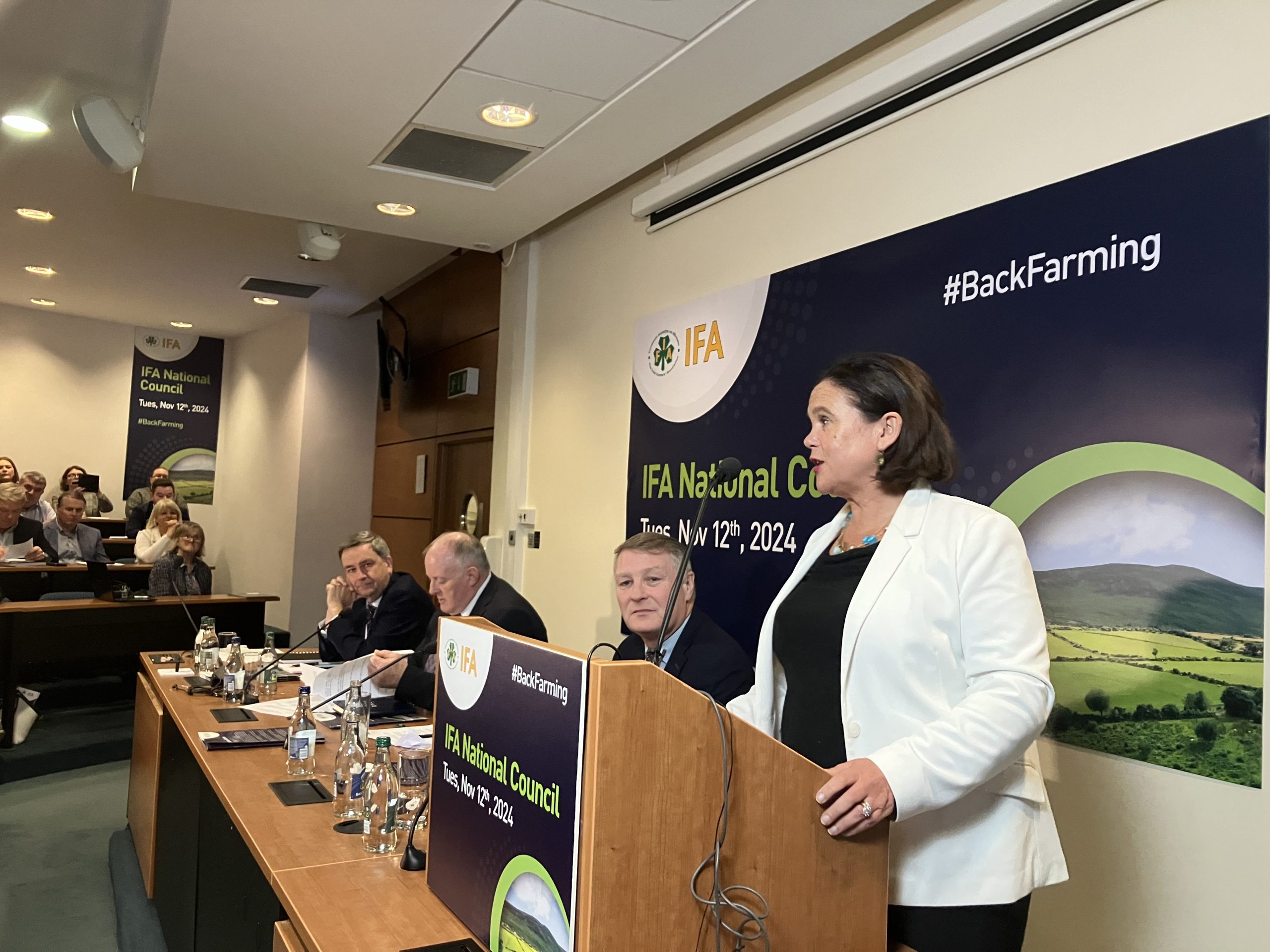 Following the visit of Fianna Fáil leader Micheál Martin and Fine Gael leader Simon Harris, McDonald spoke at the Irish Farmers' Association national council meeting today (Tuesday, November 12).