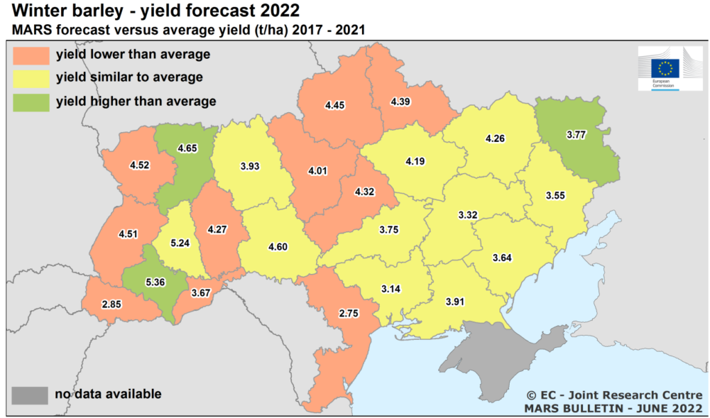 That's according to the European Commission's Joint Research Centre JRC MARS Bulletin - Global outlook - Crop monitoring European neighbourhood - Ukraine.
