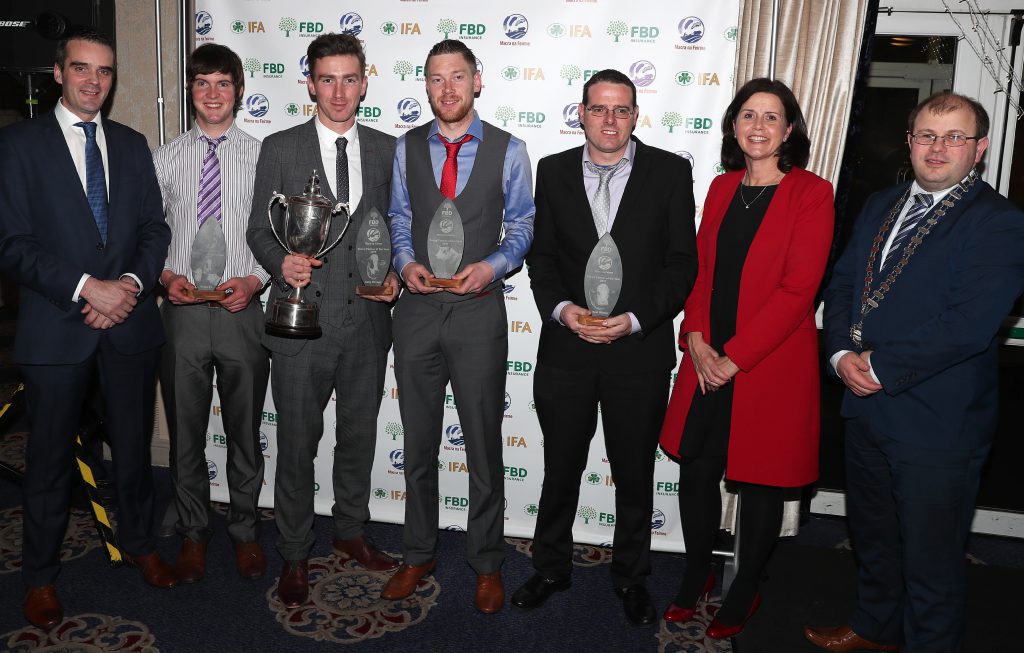 FBD Insurance CEO, Fiona Muldoon; Macra na Feirme national president, James Healy; and Irish Farmers’ Association (IFA) president, Joe Healy; presented the 31-year-old with the highly-respected trophy. He has also won a travel bursary worth €3,000.