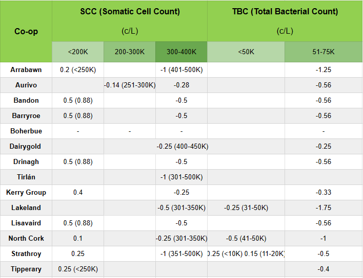 The focus is on bonuses/penalties that have the greatest impact on a supplier’s ‘milk cheque’.