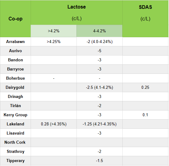 The tables (below) outline some of the most significant bonuses offered by the various co-ops, as well as some of the key penalties that may be imposed in the latest Milk Price Tracker – brought to you by AgriLand and the Irish Creamery Milk Suppliers’ Association (ICMSA).