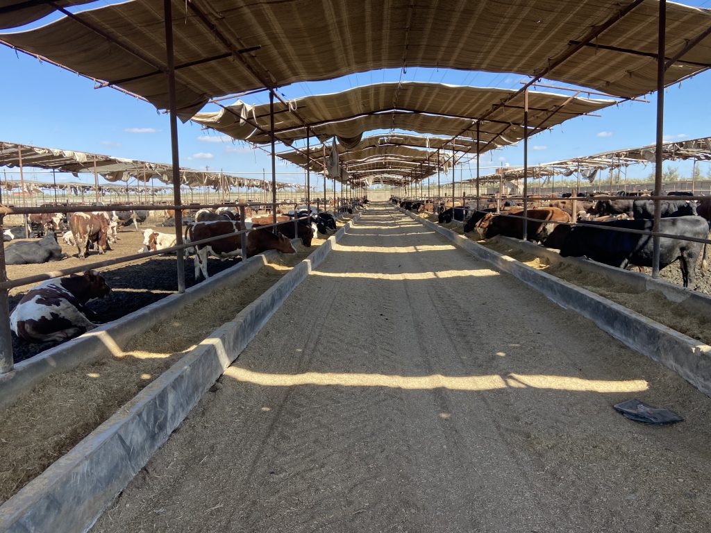 There are 25 employees on this unit and bulls are weighed on arrival and when they are leaving the feedlot. Again, the environment was similar to the dairy units, with shade and shelter provided via canopies.
