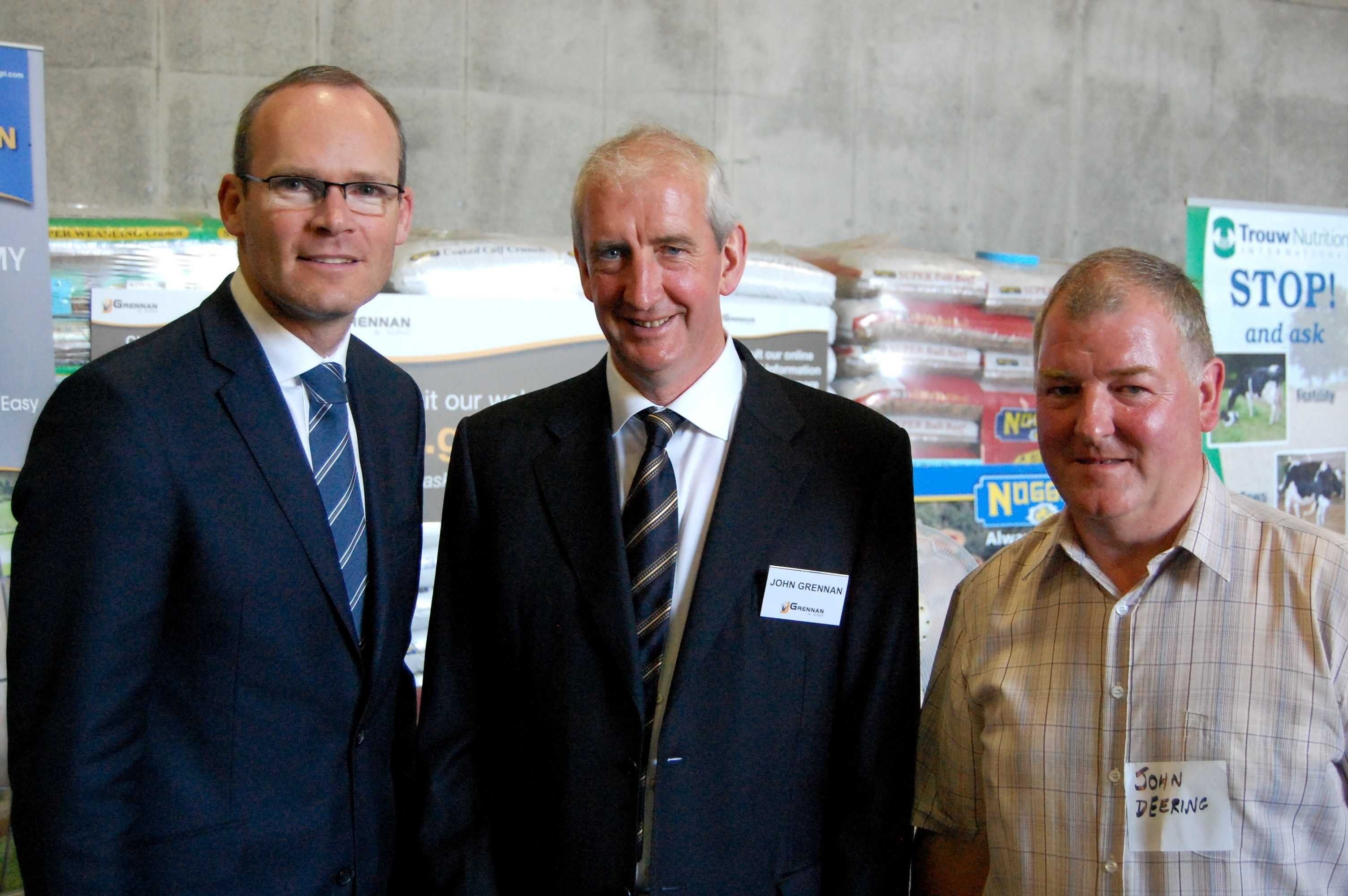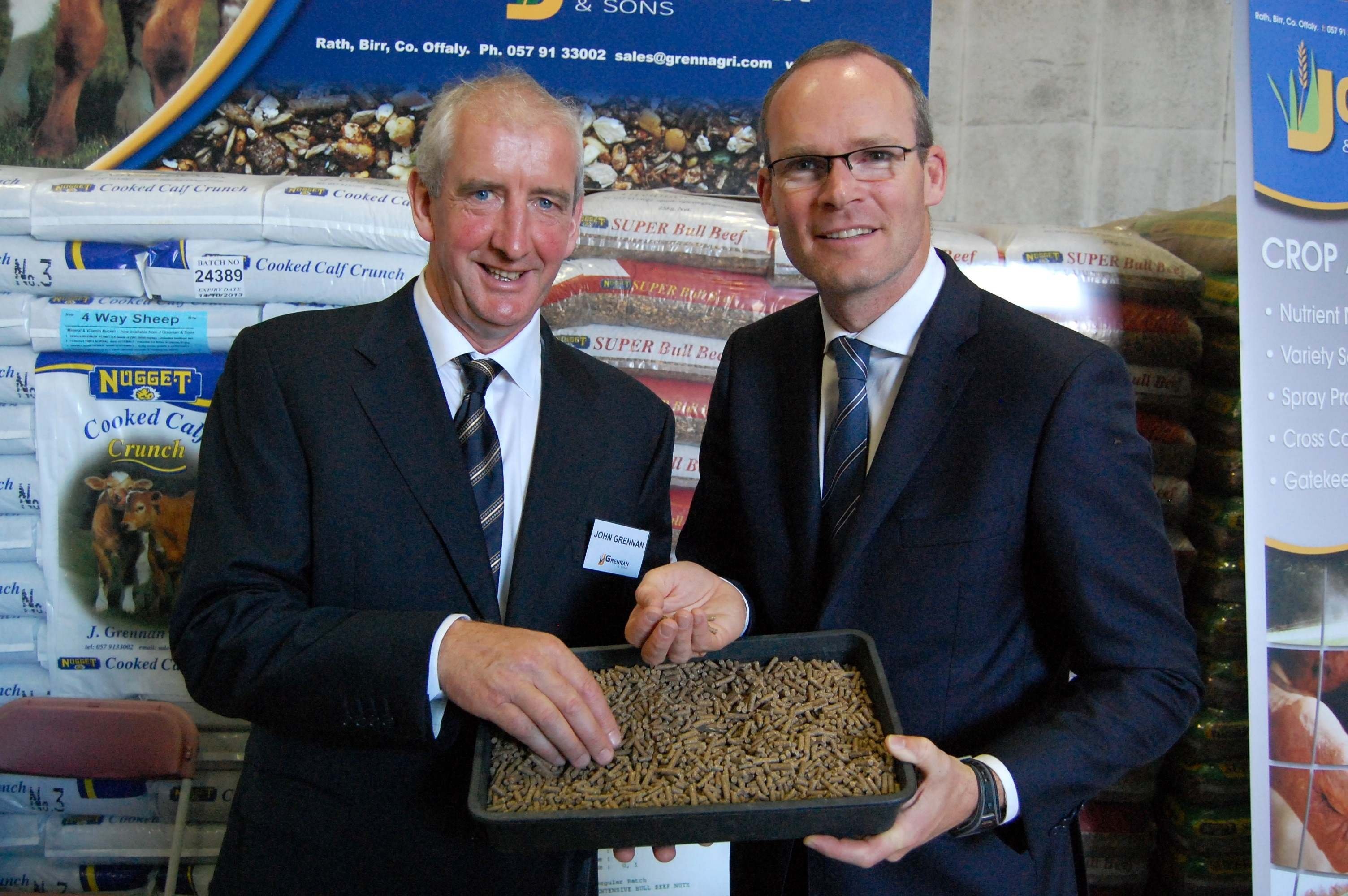 The Minister for Agriculture, Food and the Marine Simon Coveney TD this evening, 18 July, officially opened the expanded J Grennan & Sons’ animal feed compounding mill at Rath Co Offaly. Representing an investment of €6m, the new facility will allow the business to almost double its annual 100,000 tonnes throughput while, at the same time, allowing Grennan’s to manufacture high quality pelleted feeds for the dairy, beef and sheep sectors.