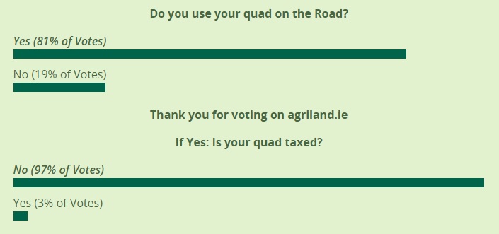 Most farmers who use their quad on the road don’t have it taxed, according to the results form a recent Agriland poll.