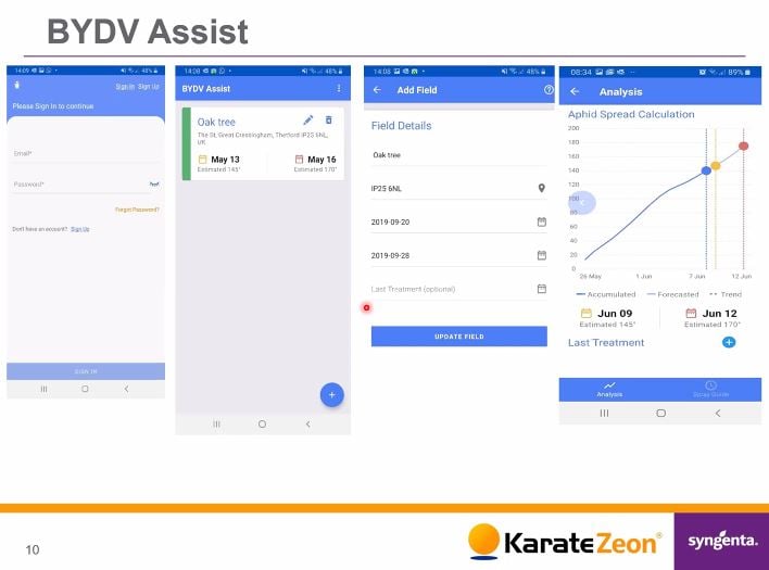 Syngenta recently launched its BYDV Assist App for mobile devices. The device will help farmers and agronomists to make decisions on aphid control in fields and is the first of a series of apps from the company to hit the market.