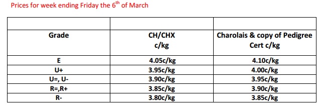 Pedigree Charolais heifers with a copy of their pedigree cert under the age of 36 months are eligible for the 12c/kg bonus and will be subject to the national quality assurance grid and the weekly base price.