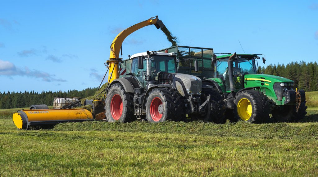 The machine in question is the Cobra 7710T – a somewhat unusual tractor-powered forage harvester. This Elho-produced video (below) shows the machine in action.