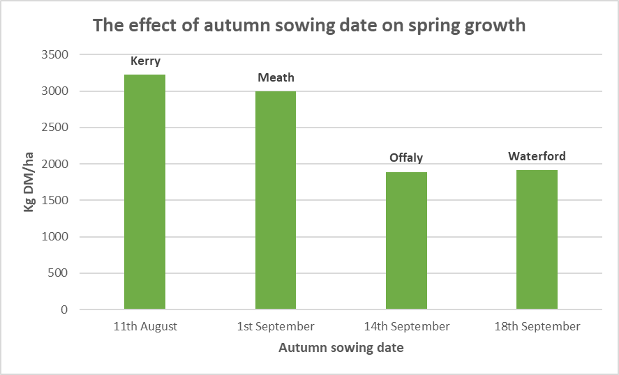 Although there was only two weeks between the early and later sowing dates, there was a significant yield penalty (+1t DM/ha) in spring following the later September sowings.