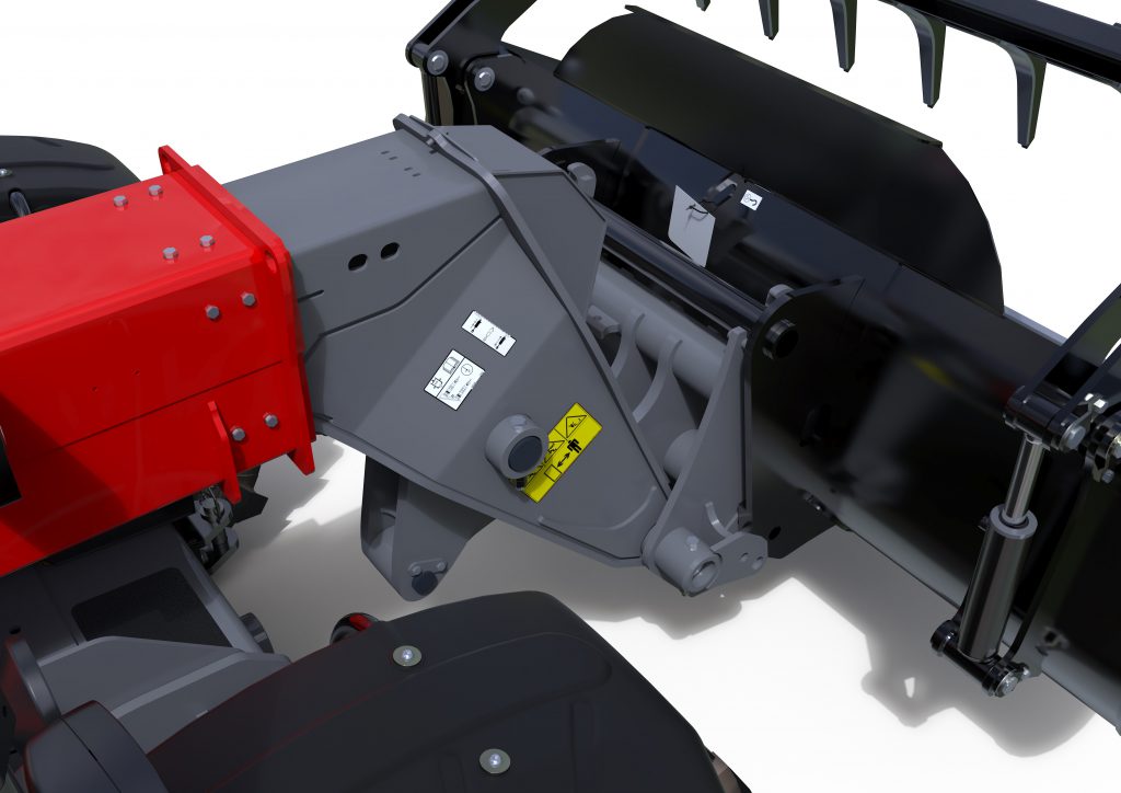 The boom is 50cm longer (to provide greater lift height) and also has a new headstock design. This new Z-shaped unit apparently provides greater working angles, with an increase of 13° on the dumping angle (49° in total) and an increase of 17° on the headstock’s total range of movement (159°).