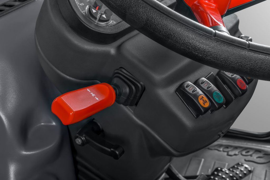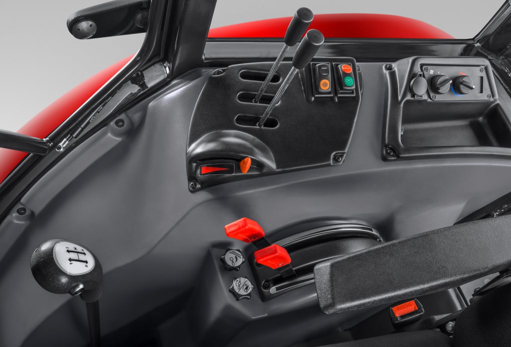 “It is a compact machine with a 4-cylinder, 2.9L, 76hp engine. The gearbox has 24 forward and 12 reverse gears, a two-stage torque multiplier (power-shift) and an electro-hydraulic reverser (power-shuttle) – which enables a smooth change of direction even when the tractor is under load.”