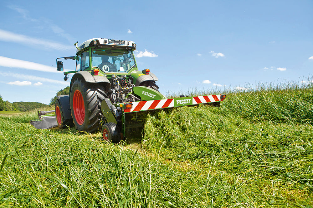 Centre-pivot machines can work on either side of the tractor; it’s the first time machines of this type have been offered by Fendt. However, Fendt has had a line-up of more basic mowers (built in the Fella factory) in its product dossier for some time.