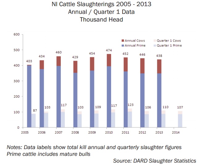 Northern Ireland cattle slaughterings have been in a state of gradual decline over the last 10 years.