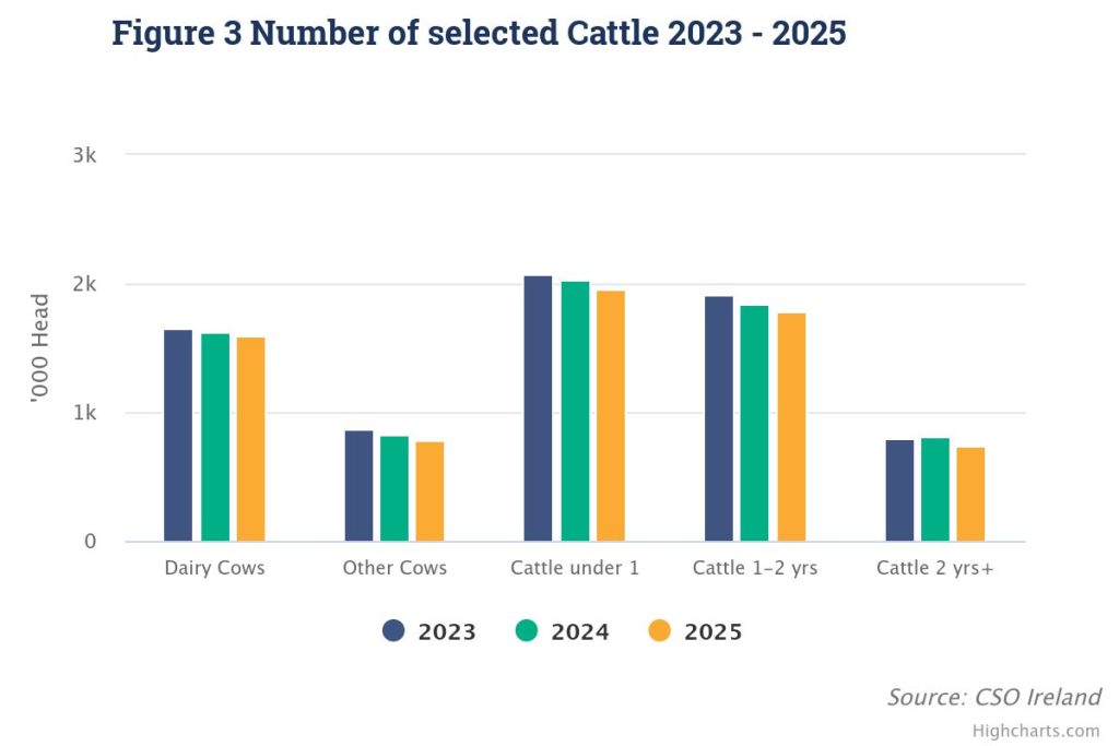 The provisional number of dairy cows in 2025 stands at 1,587,900, according to the CSO.