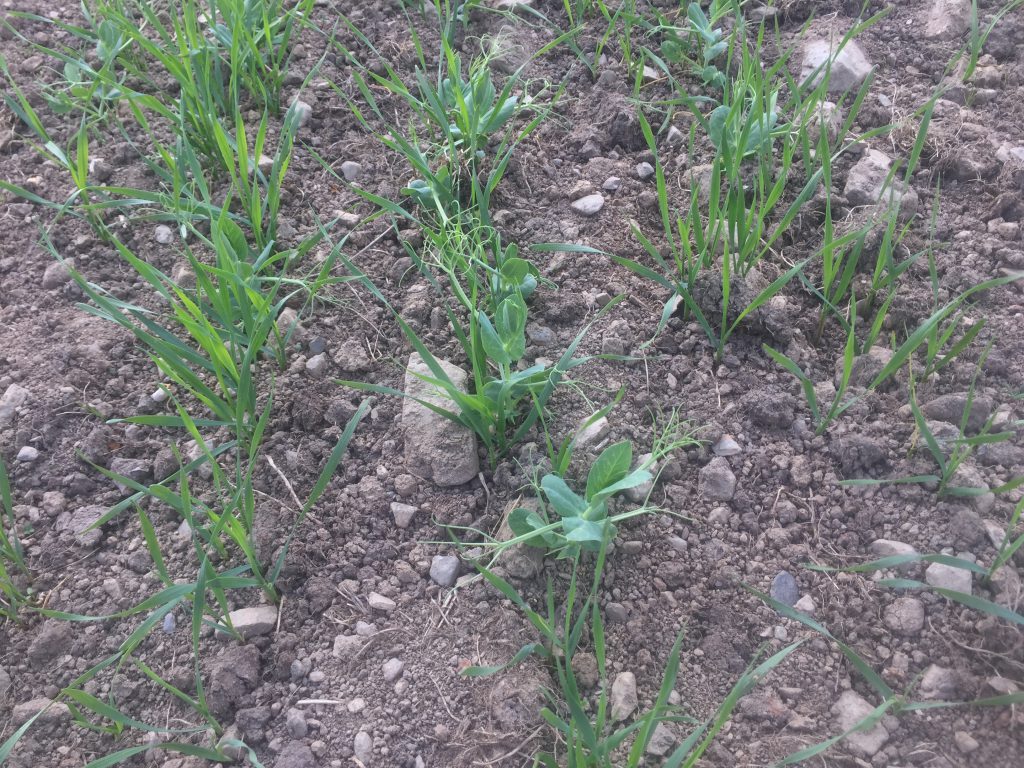 In May 2016, a 70% organic seed mixture containing spring barley and forage peas was sown. This was drilled in at 50kg/ac. A Magnum red and white clover silage ley was also broadcast on the same day at a seeding rate of approximately 14kg/ac.