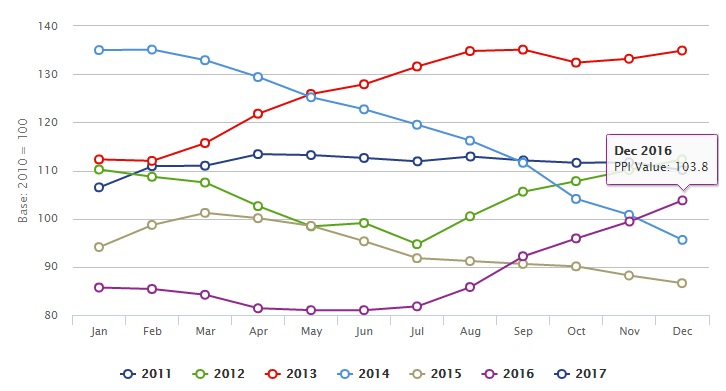 The increase in the PPI comes following the announcement by Lakeland Dairies earlier today, January 12, that it is to increase its December milk price by 1c/L.