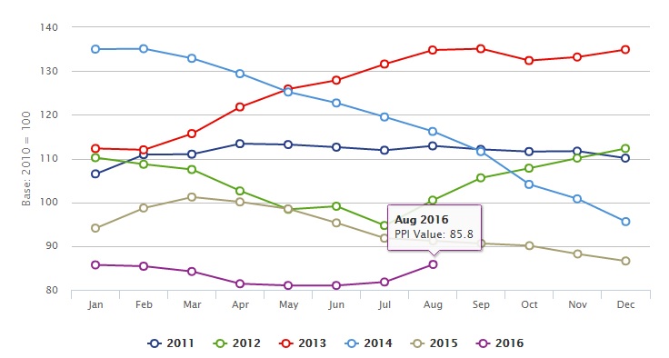 For August, the PPI rose to 85.8 points, rising from the July PPI of 81.8 points.
