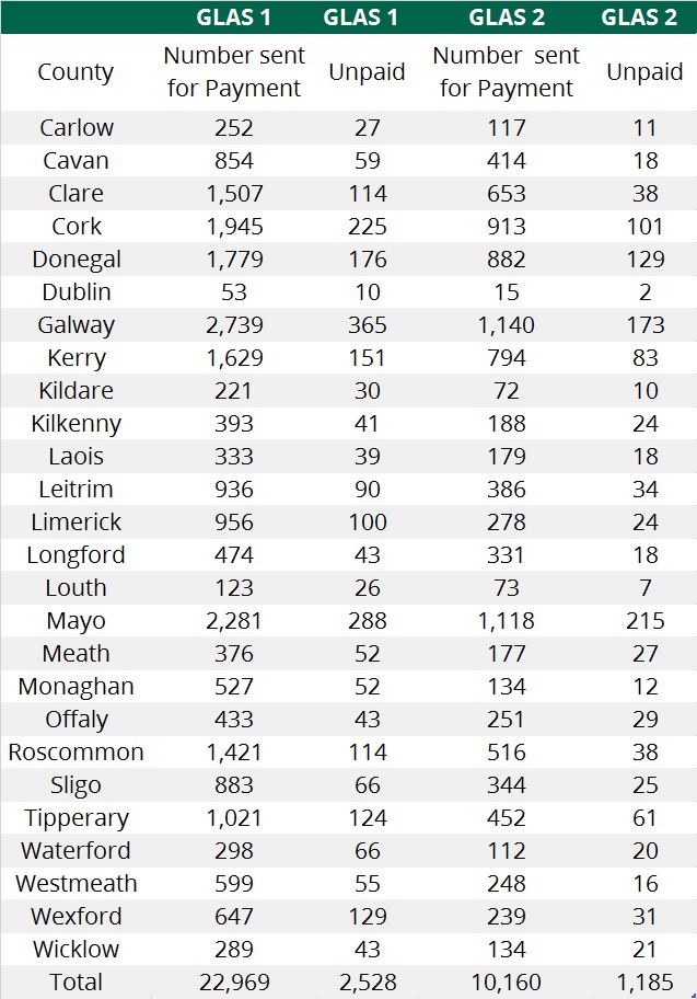 Earlier this month the IFA claimed that the Department of Agriculture, Food and the Marine gave a commitment that all outstanding 85% GLAS payments will be completed by the end of this month.