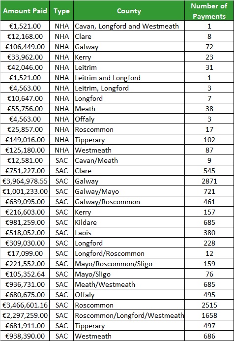 The data, provided by the Department of Arts Heritage, Regional, Rural and Gaeltacht Affairs, shows that some 3,237 applications have been received under the scheme for raised bog special areas of conservation.