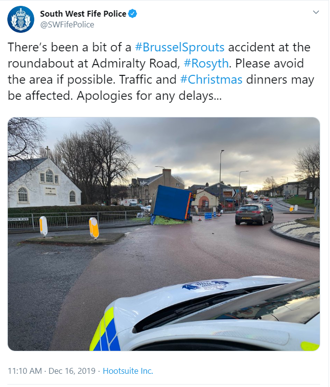 The Police’s Twitter page explained: “There’s been a bit of a #BrusselSprouts accident at the roundabout at Admiralty Road.”