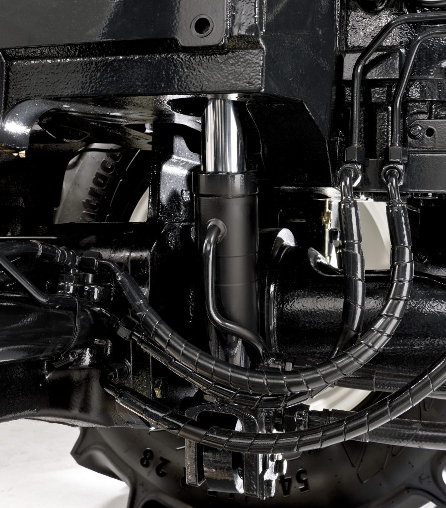 It aims to maintain the tractor in a level condition – irrespective of external forces. These forces typically would be an implement being raised or lowered, or the tractor braking or accelerating; actions where weight can be transferred on and off the front axle causing instability.